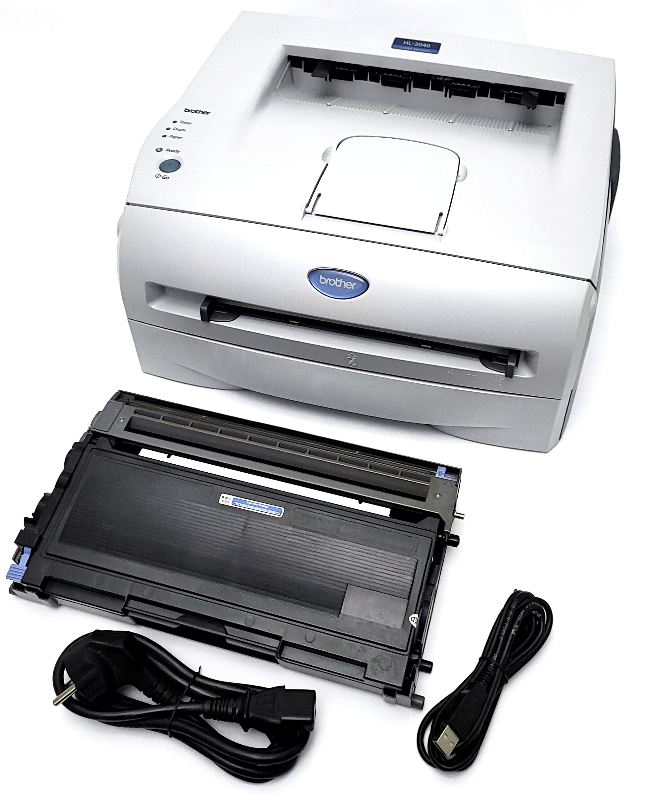 W zestawie: drukarka, pełen toner (100%), kabel zasilający 220V, kabel USB
