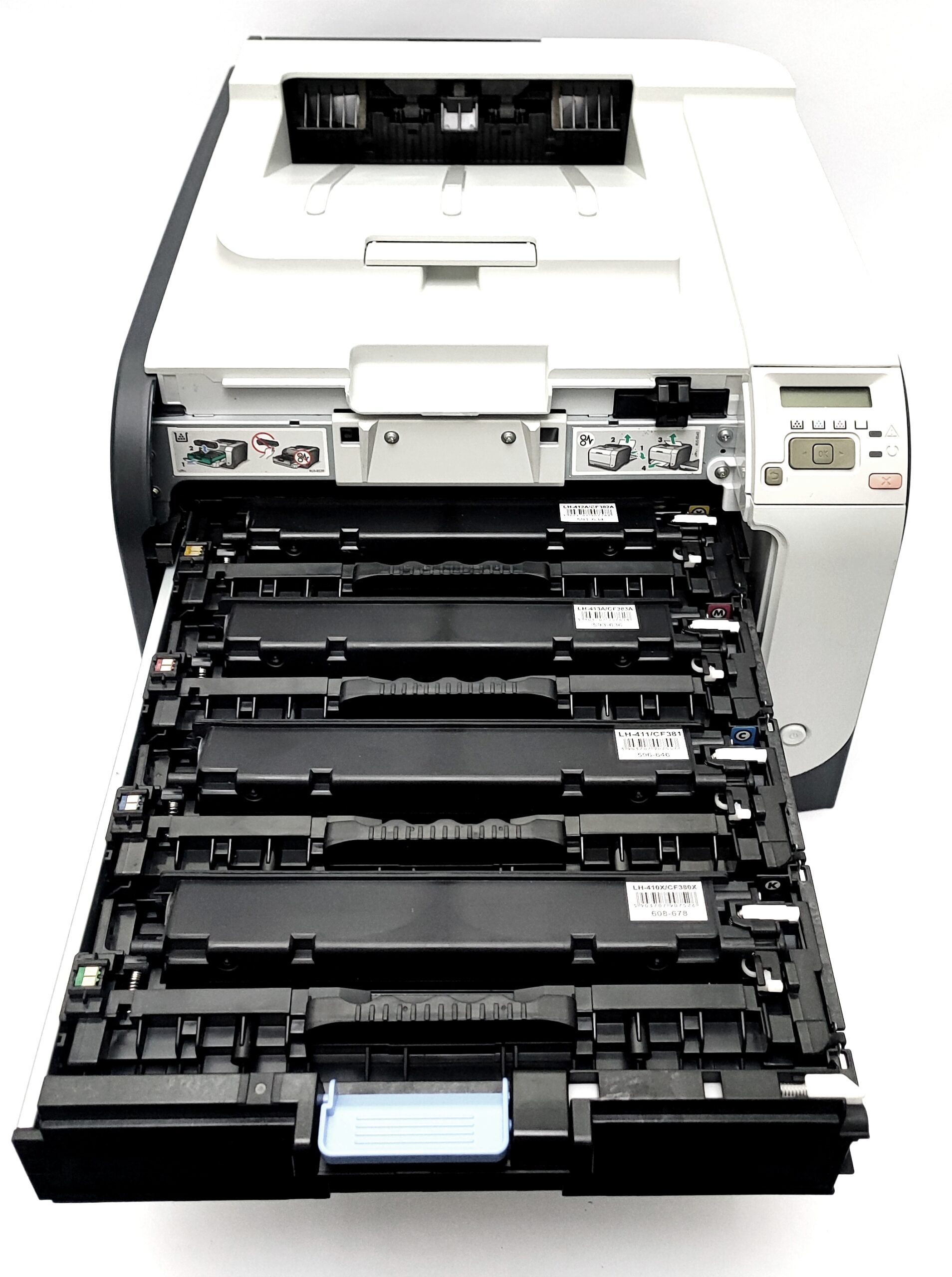 Drukarki sprawne technicznie bez żadnych ukrytych wad. Wydruki czyste, ladnie, zaczernione