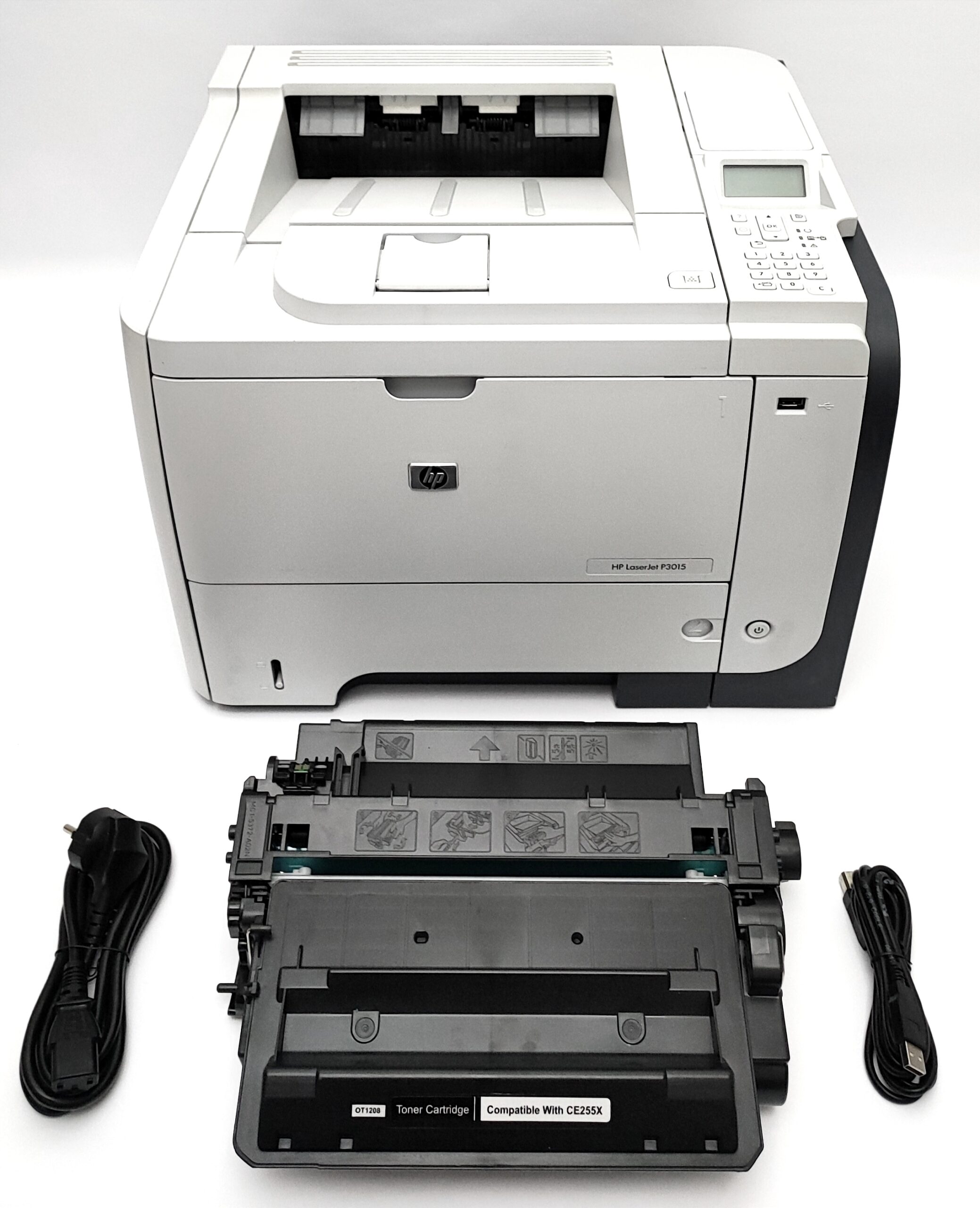 W zestawie: pełnowymiarowy, ponownie napełniony toner CE255A (wydajność: ± 6.000 stron) + kabel zasilający 220V + kabel USB