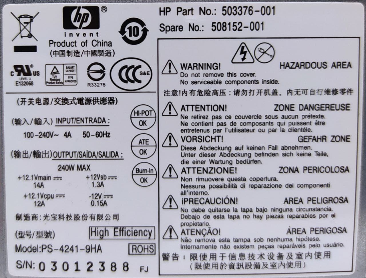 Kompatybilny z Model Numbers: PC8027, PC9055, D10-240P1A, D10-240P2A, CFH0240EWWB, DPS-240TB A, PS-4241-9HB, PS-4241-9HP , HP-D2402A0, HP-D2402E0, DPS-240RB