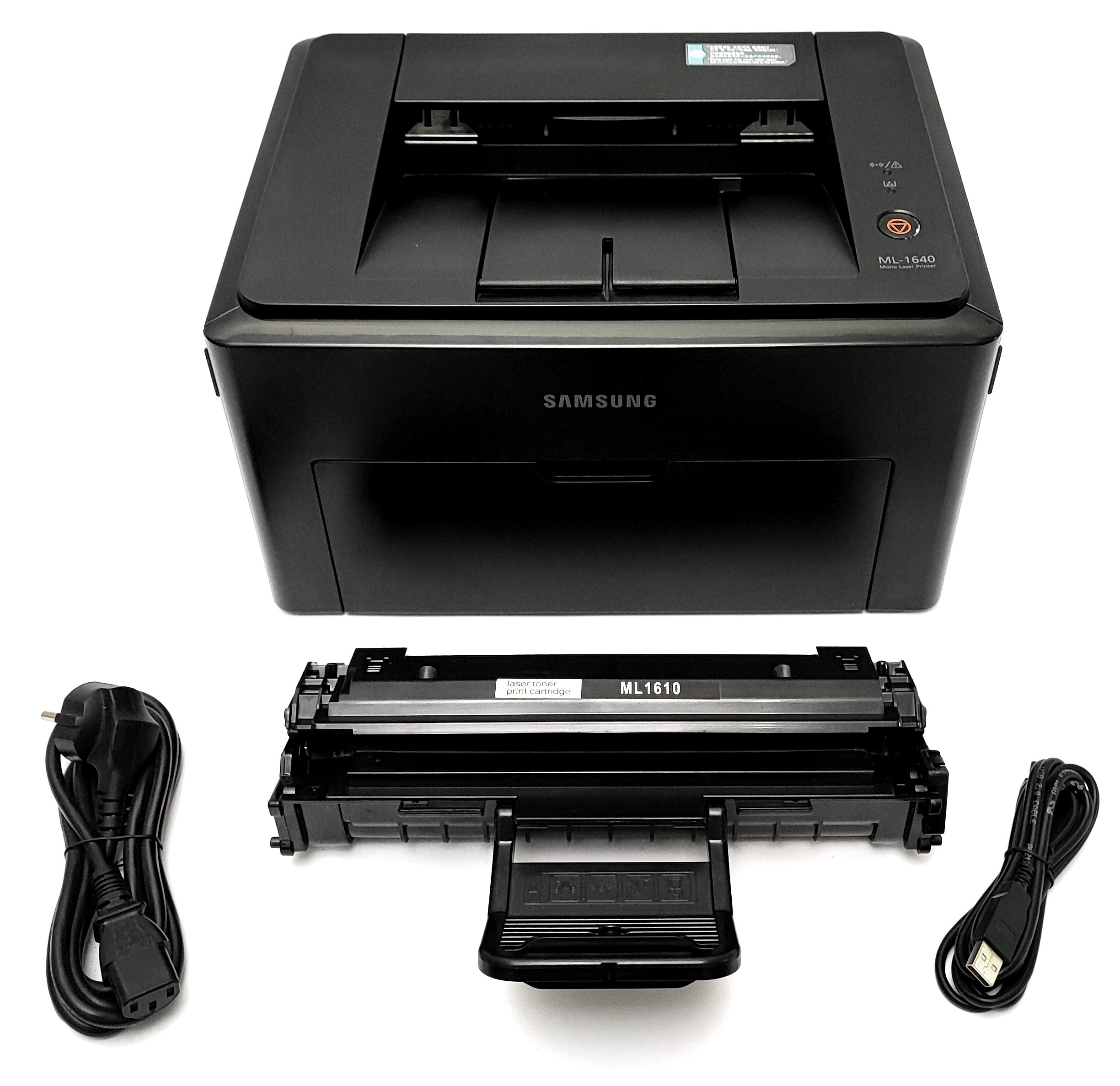 W zestawie: drukarka, pełen toner (100%), kabel zasilający 220V, kabel USB